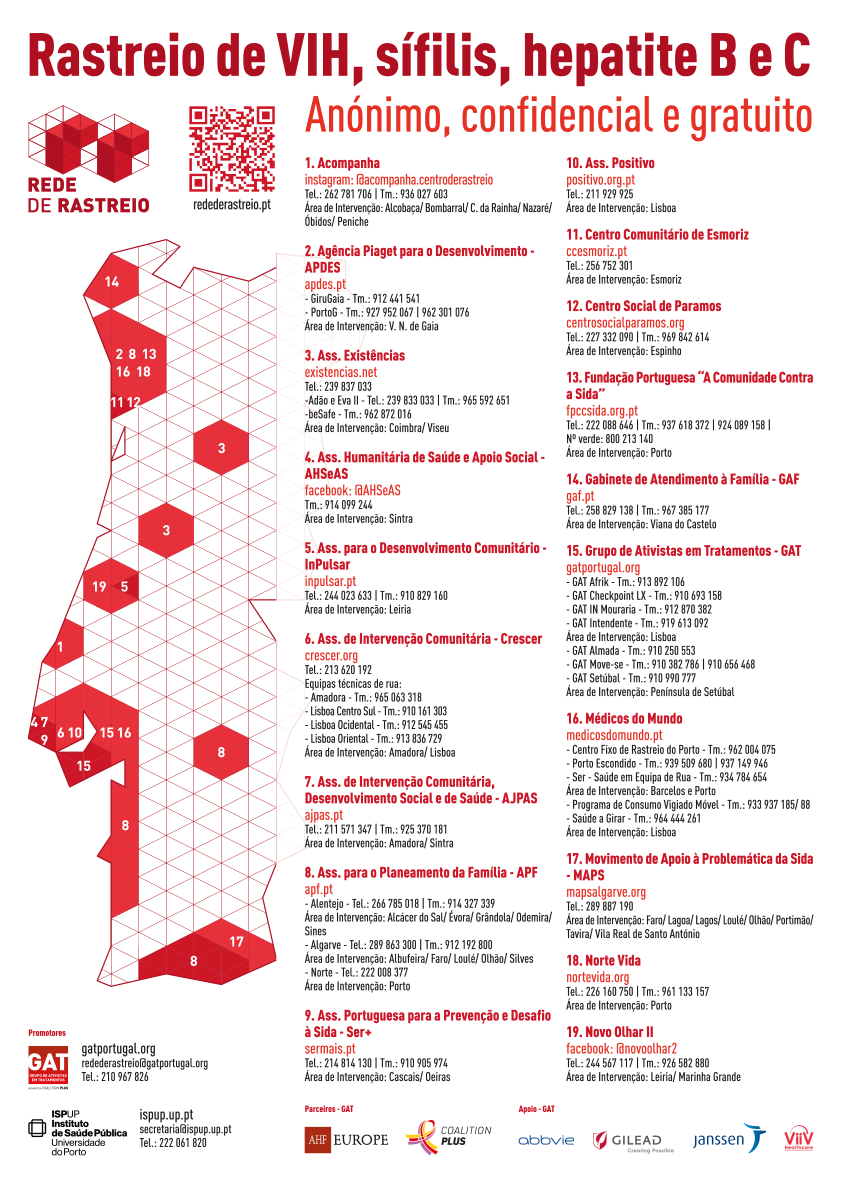 Caso não viva em nenhuma destas regiões, consulte o nosso directório de locais de rastreio a nível nacional.